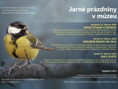 Aj tento rok vás pozývame užiť si časť jarných prázdnin v Hornonitrianskom múzeu v Prievidzi. Prázdninový pondelok, utorok i streda budú v doobedňajších hodinách patriť […]